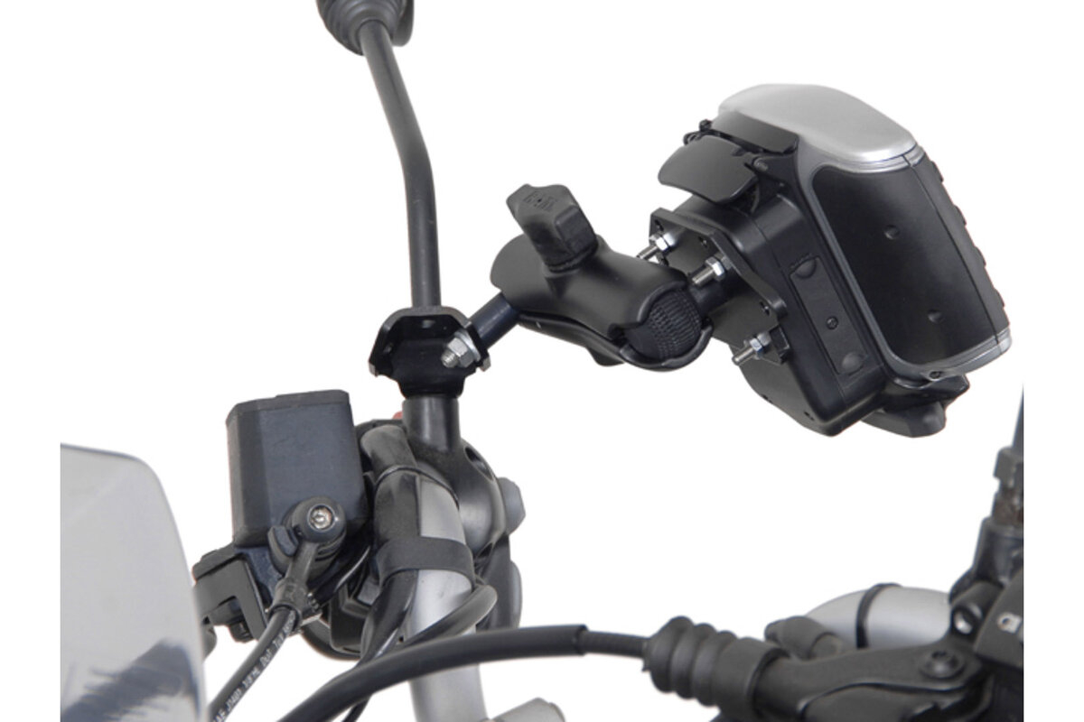 Kitul cu bilă de 1" permite montarea dispozitivelor GPS pe filetul oglinzii cu filet M8 sau M10. Pe adaptorul cu bilă se poate atașa un braț de prindere, care permite poziționarea variabilă a dispozitivului GPS.