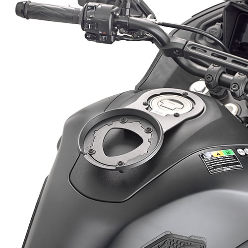 Flanșa metalică este proiectată pentru a se potrivi perfect cu gențile de rezervor Givi, permițând o instalare rapidă și ușoară. Aceasta se fixează pe busonul de rezervor al motocicletei și oferă un punct de ancorare stabil pentru geanta de rezervor.