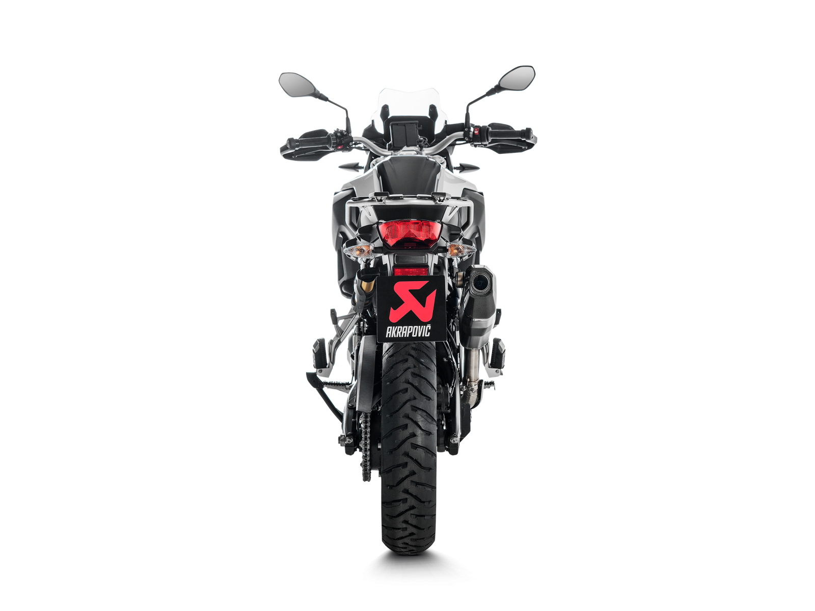 Reduce greutatea cu peste 38% față de sistemul standard, îmbunătățind manevrabilitatea pe toate tipurile de teren. Tonul Akrapovič, mai profund și mai sportiv, se potrivește perfect cu motorul twin-cylinder cuplu-ridicat.