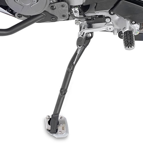 - Stabilitate: Oferă o suprafață mai largă pentru a susține cricul lateral al motocicletei pe suprafețe moi sau neregulate, evitând astfel scufundarea în sol.