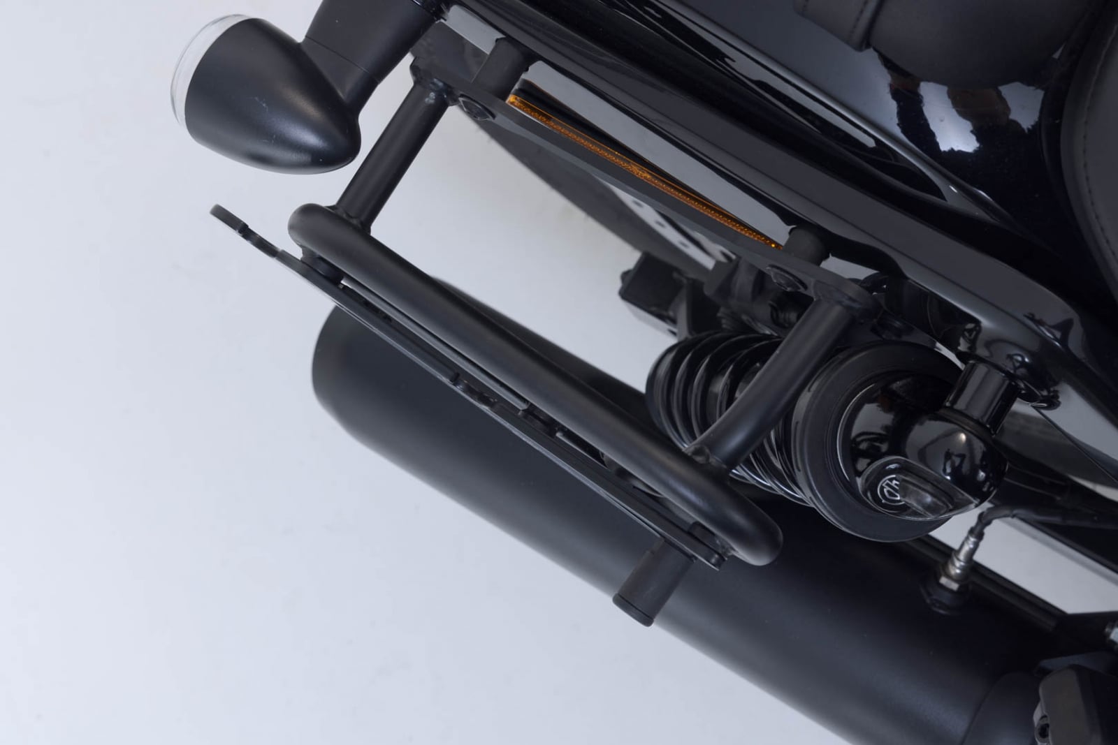 Suportul specific pentru motocicletă poate fi montat rapid și ușor pe punctele de fixare originale de pe șasiul aripii. Sistemul de blocare rapidă permite montarea și demontarea genților laterale LH Legend Gear cu câteva mișcări simple ale mâinii, fără ca șoferul să sacrifice fixarea fiabilă a genții.