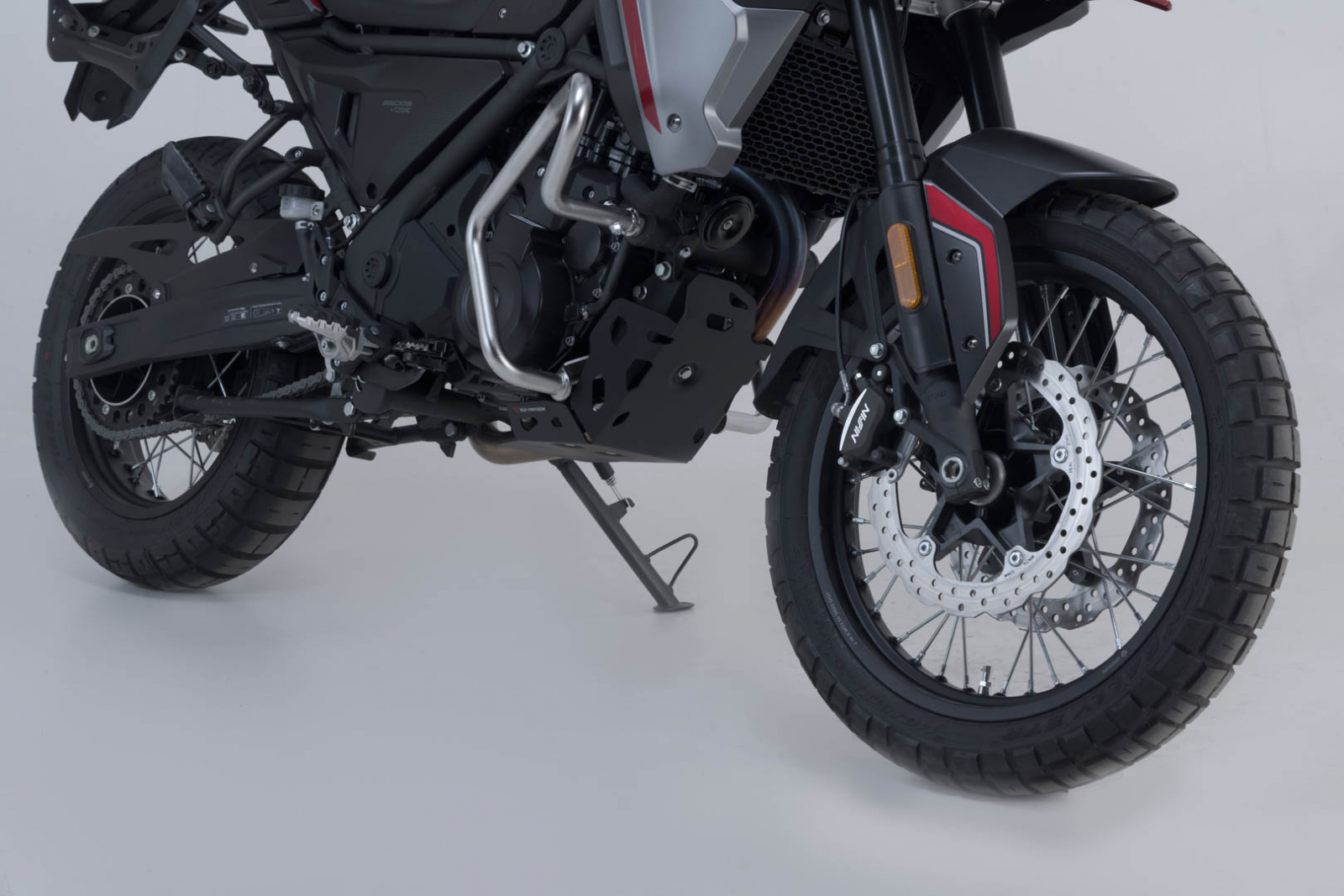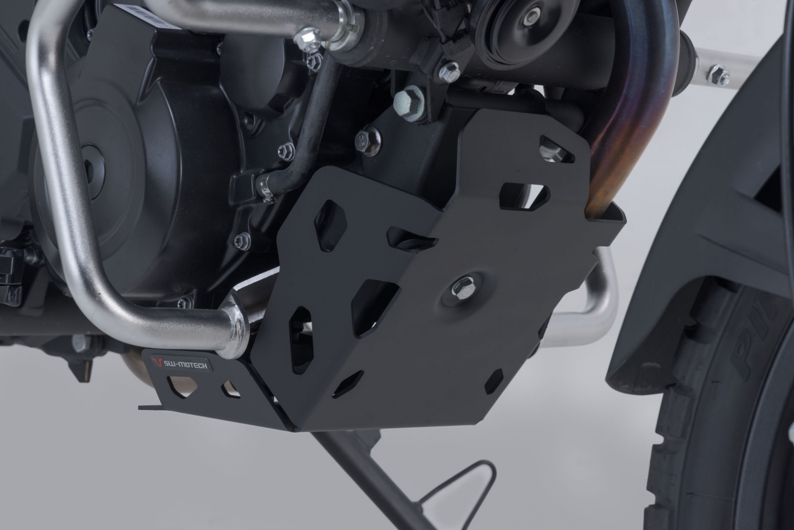 Protectie suplimentara impotriva pietrelor sau a contactului cu solul pentru motor. Fixare sigura, fara a afecta garda la sol. Instalarea pe punctele de montare existente ale cadrului confera stabilitate si permite o instalare usoara.