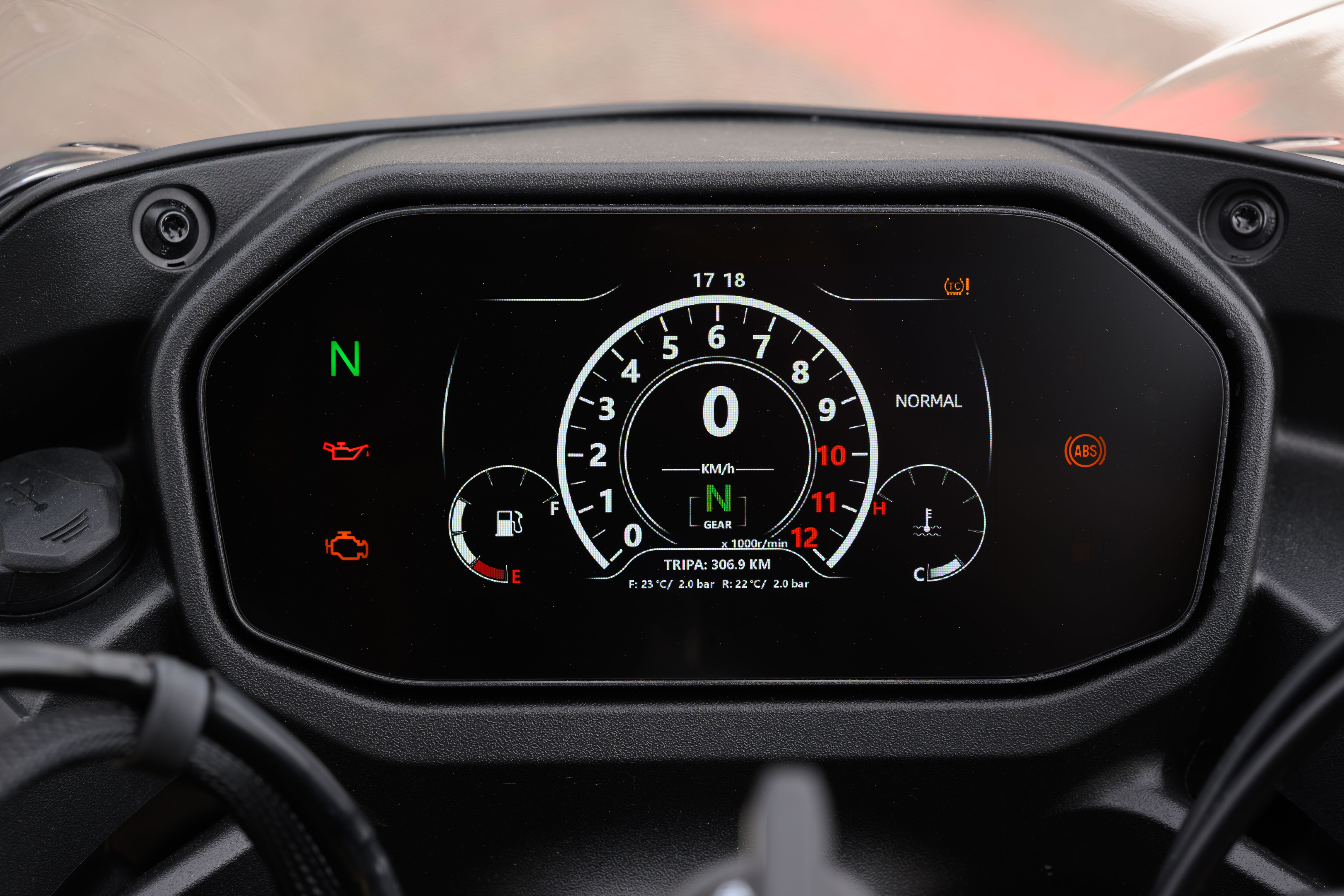 Motocicleta vine echipată cu moduri de condus (Normal și Sport) și Traction Control dezactivabil, plus porturi de încărcare USB și USB-C, utile în orice deplasare.