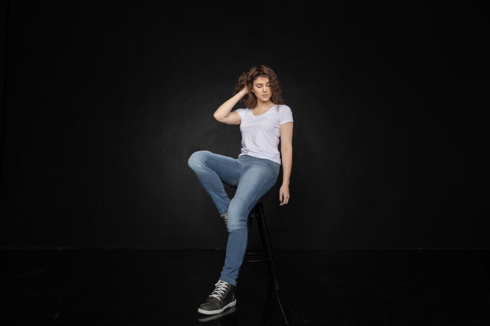 Blugi moto special concepuți pentru femei, City Nomad Karen Classic, cu protecții ajustabile și detașabile nivel 2 la genunchi și protecții nivel 1 la șolduri.