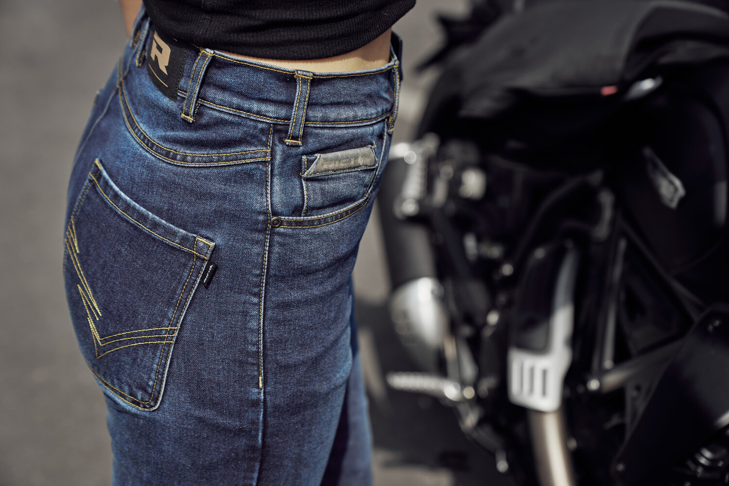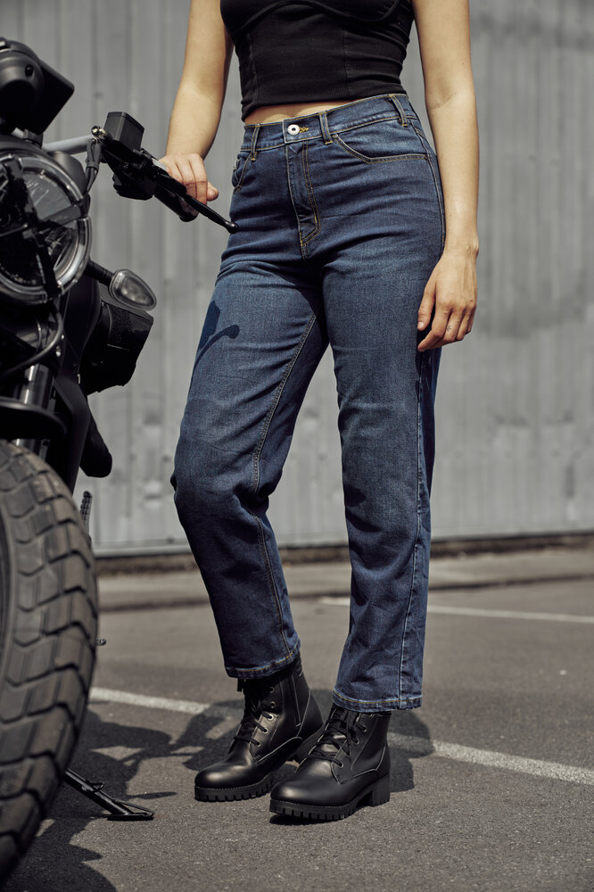 Concepuți pentru femeile care doresc echipament de motociclism care să fie la fel de confortabil pe cât este de elegant, blugii moto Richa Estelle BF oferă confortul necesar pentru vară, protecție de nivel AA și o croială relaxată, de tip boyfriend, ușor de purtat atât pe motocicletă, cât și în afara acesteia.
