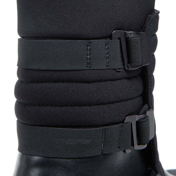 T-DRY și au o structură tubulară cu tijă elastică și catarame reglabile pe două niveluri pentru fixare și cu fermoar lateral în interior.