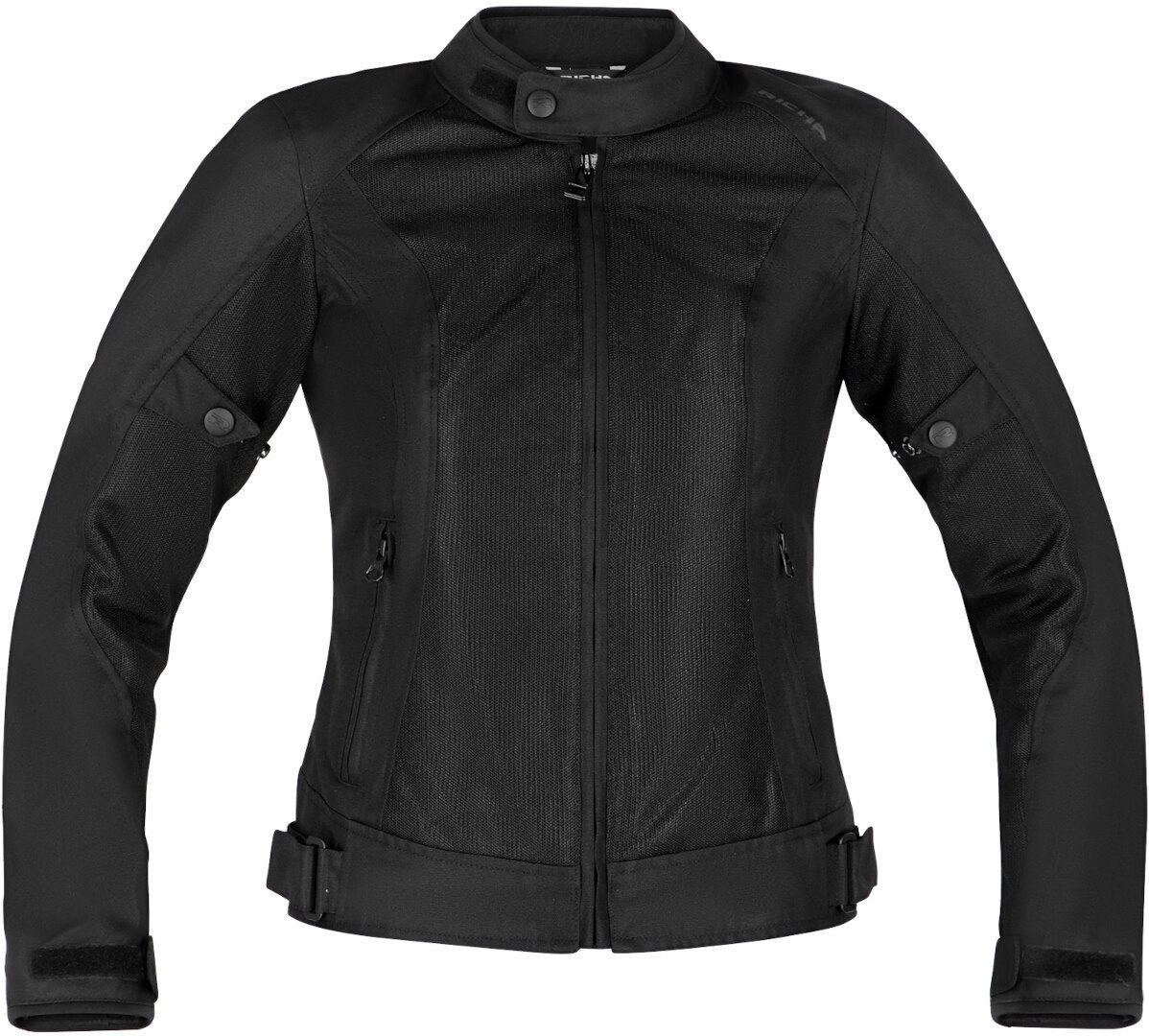 Geaca de vară Richa Airsummer este concepută special pentru dame, fiind ideală pentru sezonul cald. Panourile din plasă dispuse pe piept, abdomen, brațe și spate oferă un flux de aer optim, ajutând la reglarea temperaturii corpului în cele mai calde condiții. Pentru un plus de confort, gulerul și capetele mânecilor sunt finisate cu neopren moale. Airsummer este prevăzută cu 2 buzunare interioare și 2 exterioare. Clapeta de la nivelul gâtului fixează gulerul gecii și fermoarul. Pentru un plus de confort și siguranță, geaca este prevăzută cu un fermoar scurt pentru conectarea pantalonilor Richa. Geaca este prevăzută cu protecții D3O nivel 1 la umeri și coate, fiind pregătită și pentru protecția de spate (disponibilă separat).