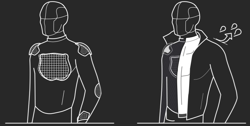 Geaca sistem Step-In Armor SPIDI Tech Armor). Legătura dintre straturi se face prin fermoare și prin sistemul