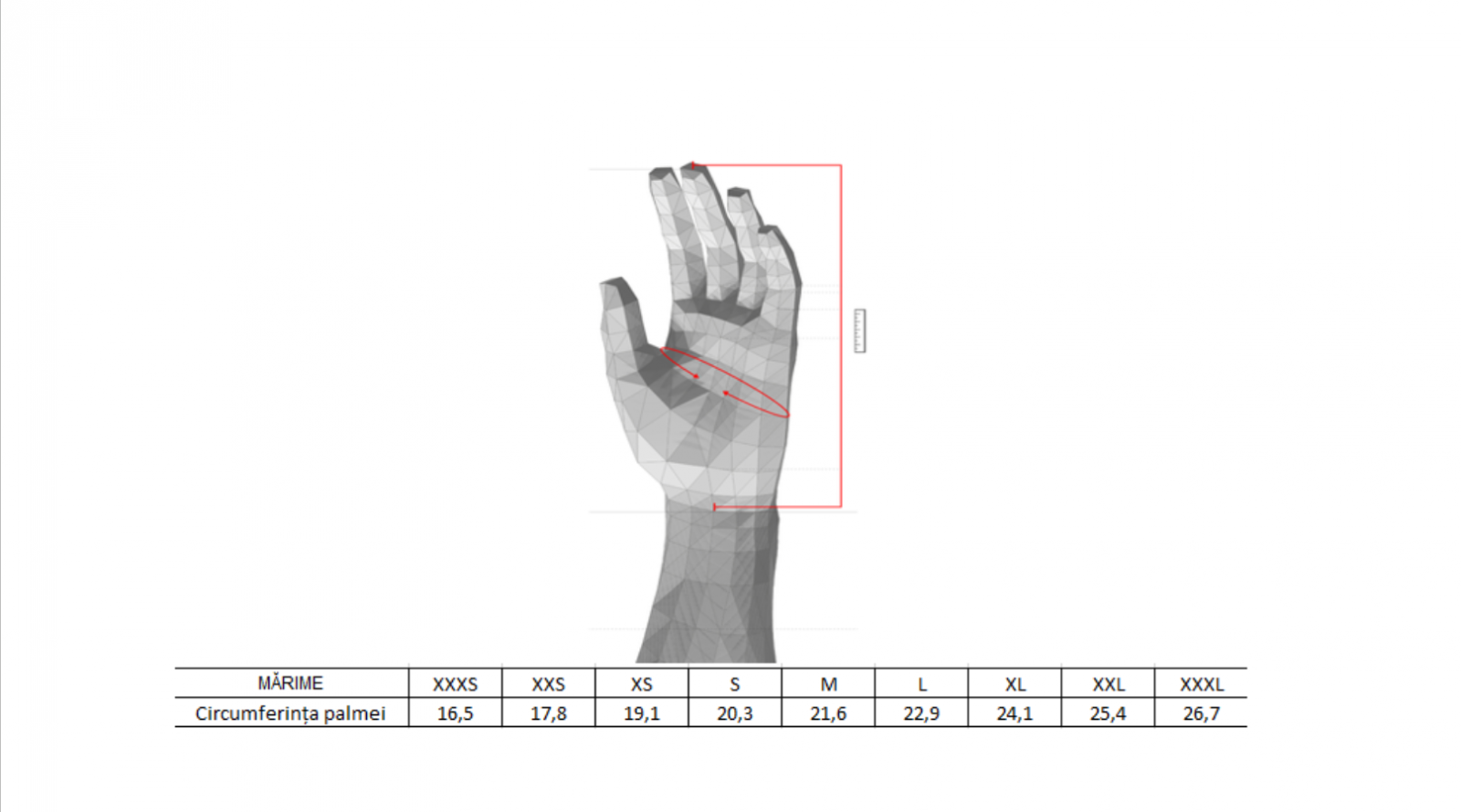 - Interiorul palmei este prevăzut cu piele sintetică;