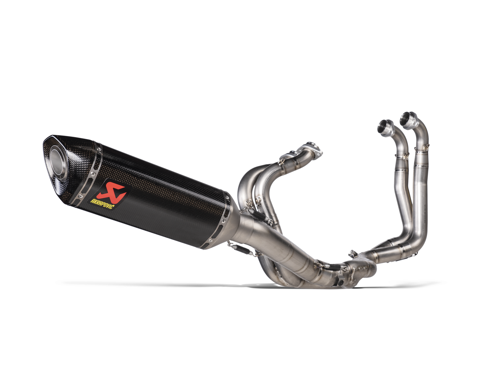 Este construit cu o manta exterioară și un capăt din fibră de carbon, cu un link‑pipe și structura internă a tobei din titan integral, iar colectoarele și header-ele sunt fabricate dintr-un aliaj de titan de calitate superioară.