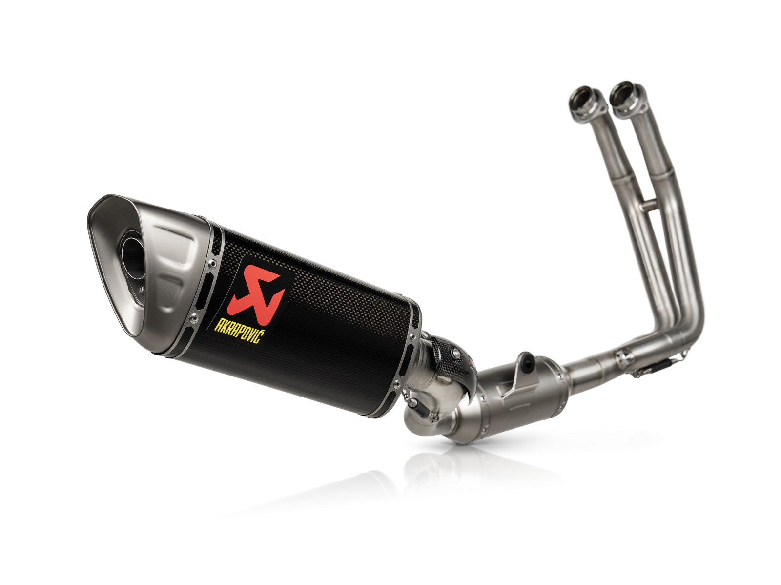 Rerutarea alternativă a traseului evacuării o poziționează pe partea dreaptă a motocicletei (varianta standard trece pe sub motocicletă), oferind un stil mai orientat spre curse, iar scutul termic din fibră de carbon asigură protecție împotriva căldurii și un aspect final atractiv.