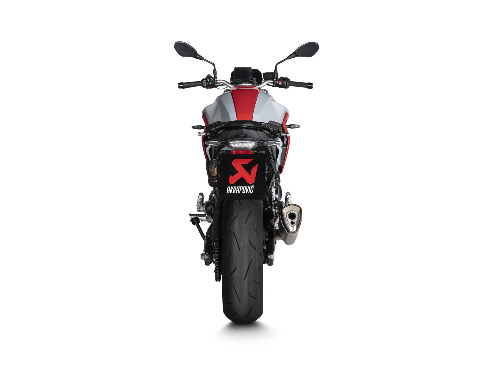Complet compatibil cu cutiile laterale BMW și cu standul central, întregul sistem Akrapovič poate fi suplimentar îmbunătățit prin adăugarea unei protecții termice realizate manual din fibră de carbon.