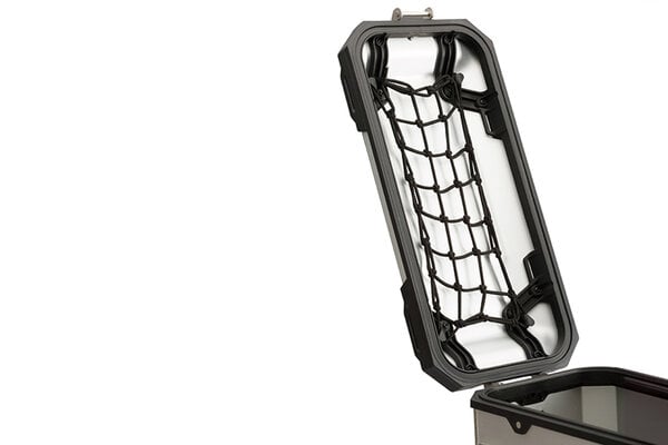 Bagajele, exact atunci când ai nevoie: plasa pentru capacul cutiilor din aluminiu TRAX ADV oferă o organizare mai eficientă. Plasa extrem de flexibilă se prinde rapid în punctele de fixare din interiorul capacului, astfel încât documentele, pantofii, geaca de ploaie sau rucsacul pliabil să fie ușor accesibile la deschiderea cutiei.