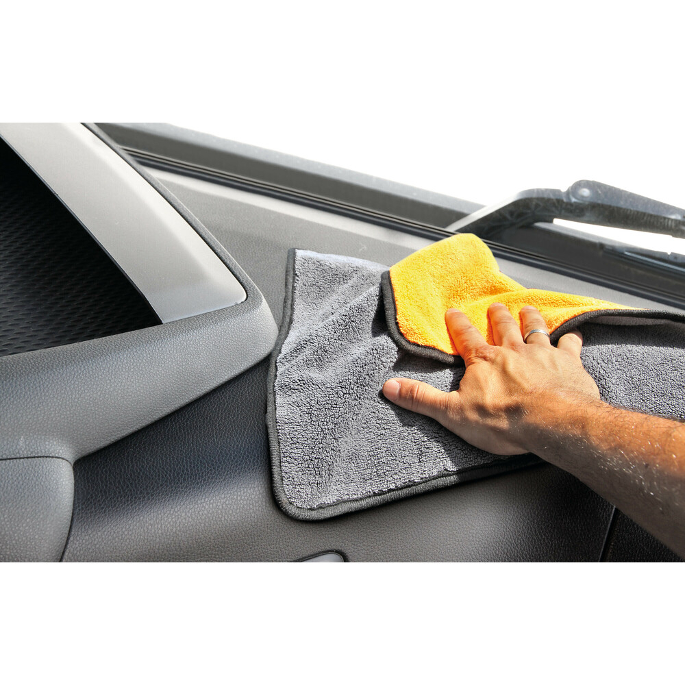 Materialul microfibră asigură proprietăți excelente de curățare, fără a zgâria suprafețele. De asemenea, absoarbe eficient apa, uscând rapid. Datorită calității superioare, laveta este foarte durabilă, putând fi spălată și reutilizată. Un accesoriu practic pentru întreținerea autoturismului.