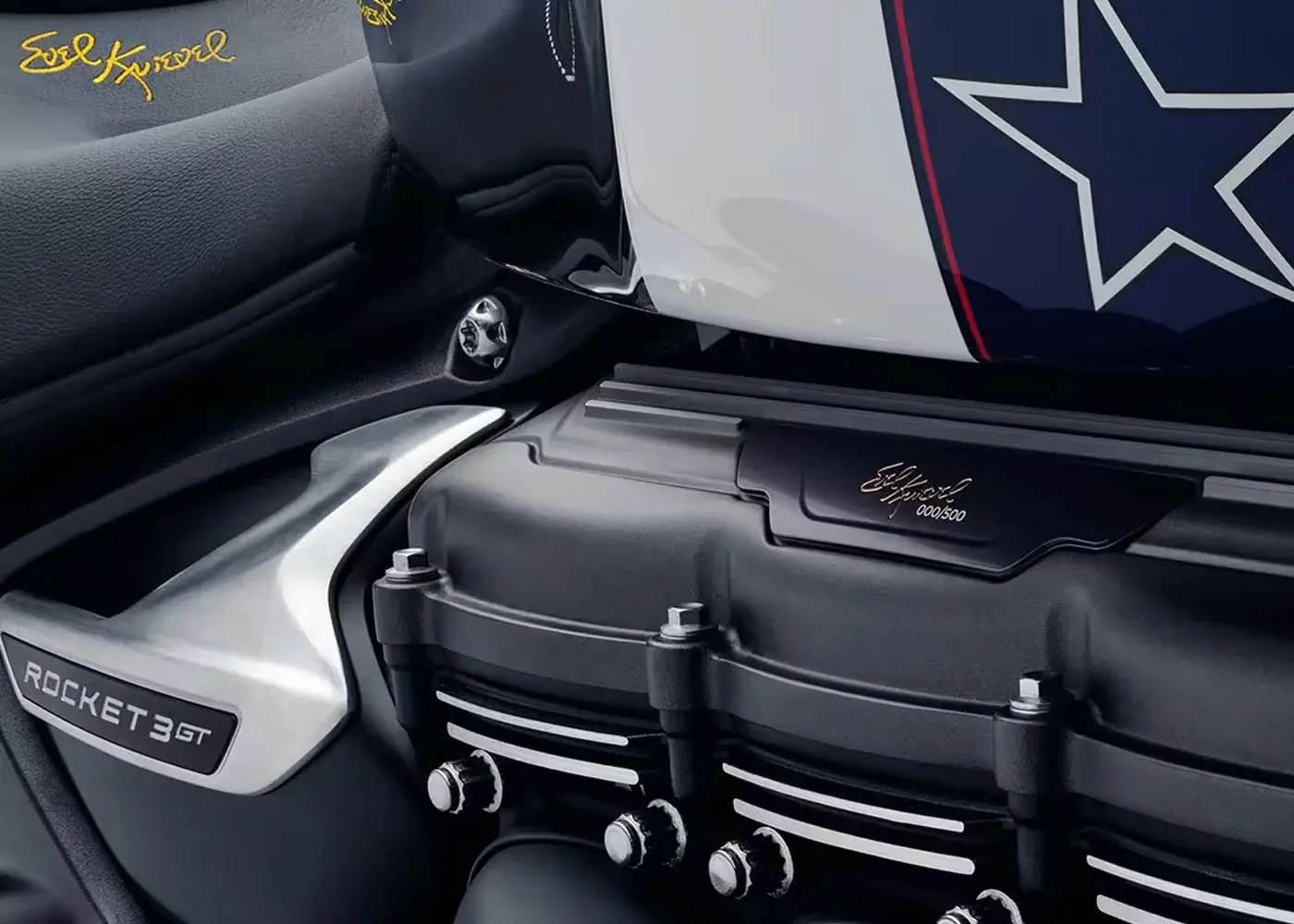 Editia limitata Evel Knievel se remarca printr-o schema de vopsea personalizata, detalii grafice inspirate de legendarul sau costum si embleme unice, transformand fiecare unitate intr-o adevarata piesa de colectie. Dotata cu tehnologii de ultima generatie, precum ecran TFT color, moduri de condus personalizabile, sistem de franare Brembo Stylema si iluminare full LED, Rocket 3 GT Evel Knievel Limited Edition este expresia suprema a stilului, puterii si exclusivitatii.