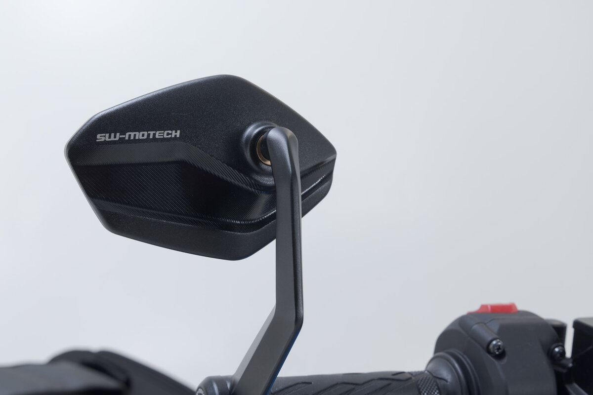 Fă ca Suzuki GSX-8S să iasă în evidență cu oglinzile de capăt de ghidon de la SW-MOTECH. Oglinzile sunt realizate din aluminiu forjat, frezat și anodizat negru, având detalii gravate cu logo. Astfel, adaugă un plus de robustețe și eleganță ghidonului tău.