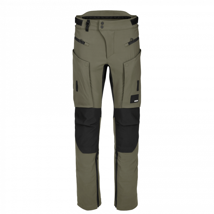 Puteți ajusta lungimea taliei prin sistemul Velcro® Ergofit System, în timp ce materialul elastic poziționat în zona gambelor menține protecțiile pentru genunchi (nivel 2, reglabile pe înălțime) mereu în poziția corectă. Fermoarele YKK® din partea de jos oferă posibilitatea de a purta acești pantaloni chiar și peste cizmele de motocross.
