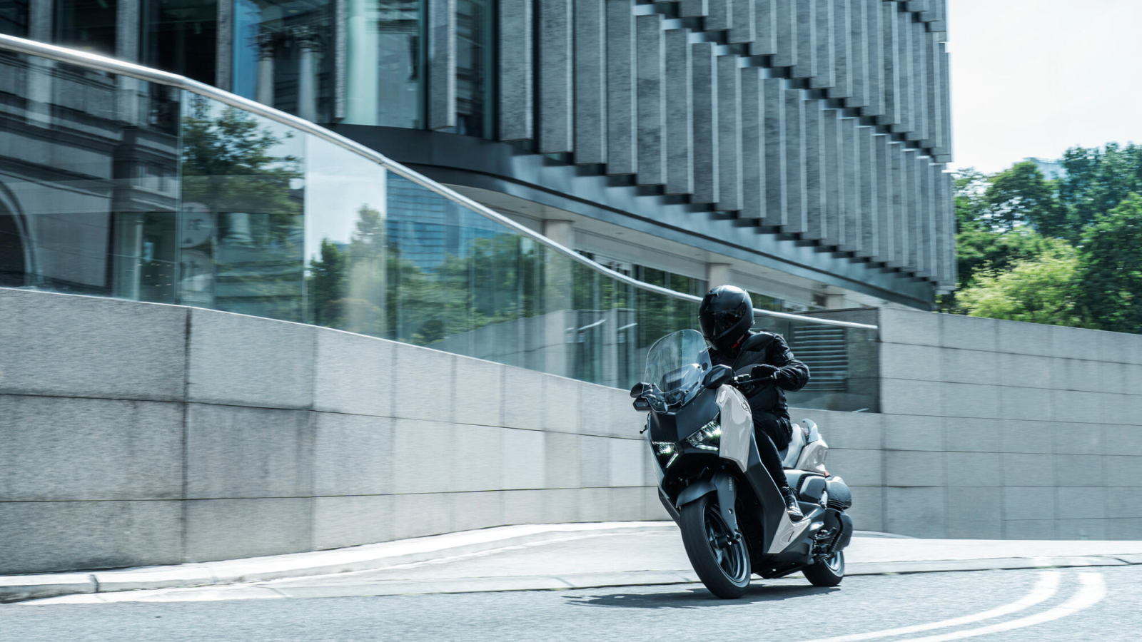 Pentru o protecție și mai mare împotriva vântului, XMAX 300 Tech MAX+ este echipat cu un parbriz reglabil electronic care oferă o reglare continuă de 95 mm - în timp ce carcasa redesenată a semnalizatorului frontal și spoilerul frontal reduc, de asemenea, impactul produs de vânt. Împreună cu ghidonul reglabil și scărițe spațioase pentru picioare, este ușor pentru piloții XMAX 300 Tech MAX+ să obțină configurația ideală.