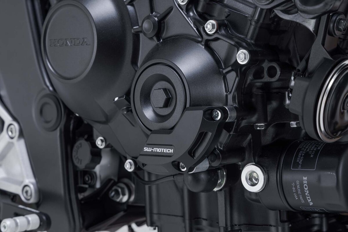 Setul de protectii pentru carcasa motorului, prelucrate CNC din aliaj de aluminiu de inalta rezistenta, combina un design elegant cu o functionare practica, protejand partile expuse ale motorului impotriva deteriorarilor majore in cazul contactului cu solul sau al unui accident.