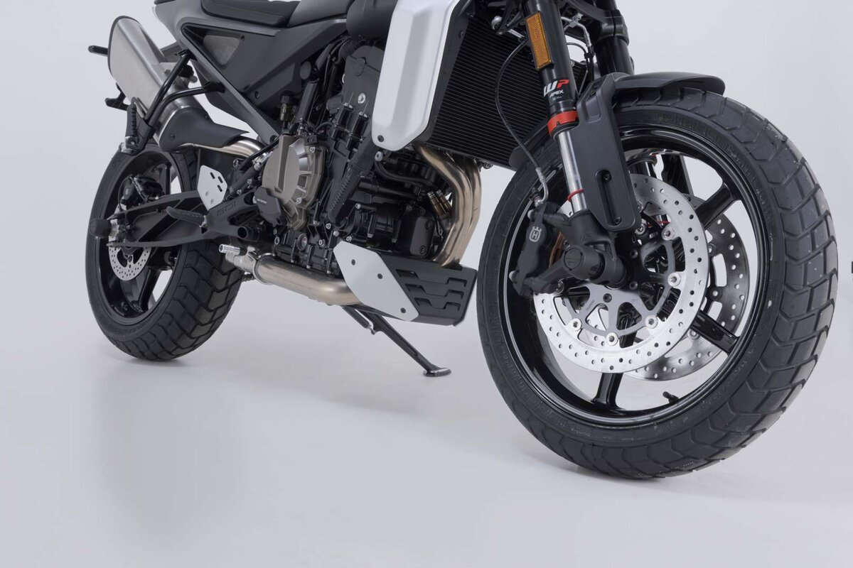 Acest spoiler fata a fost fabricat de SW-MOTECH special pentru Husqvarna Svartpilen 801, oferind protectie eficienta impotriva pietrelor aruncate si a contactului accidental cu solul. Stratului de vopsea pudra ii confera durabilitate ridicata si protectie permanenta impotriva coroziunii. Protectia robusta pentru partea inferioara se monteaza usor pe punctele originale de prindere, fara nevoie de gaurire sau sudura, folosind suportii din otel inclusi.