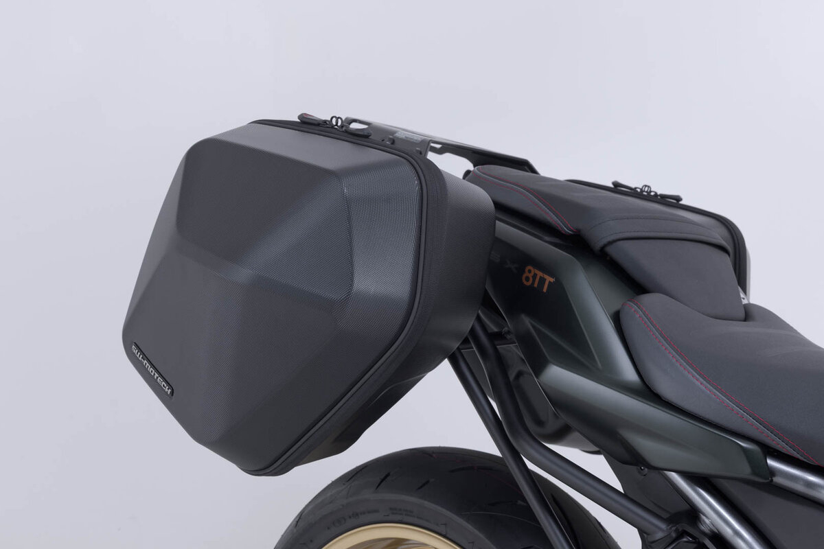 Dezvoltarea precisa, specifica motocicletei, a suportului lateral permite un montaj simplu si sigur pe punctele de prindere originale ale acesteia. Gentile laterale pot fi atasate si demontate prin cateva miscari simple, datorita sistemului de prindere rapida, fara a compromite siguranta fixarii. Suportul SLC asigura o fixare sigura pentru gentile laterale Legend Gear LC1/LC2, cutiile laterale URBAN ABS, SysBag cu placa adaptoare, precum si pentru suportul lateral universal si suportul de numar.