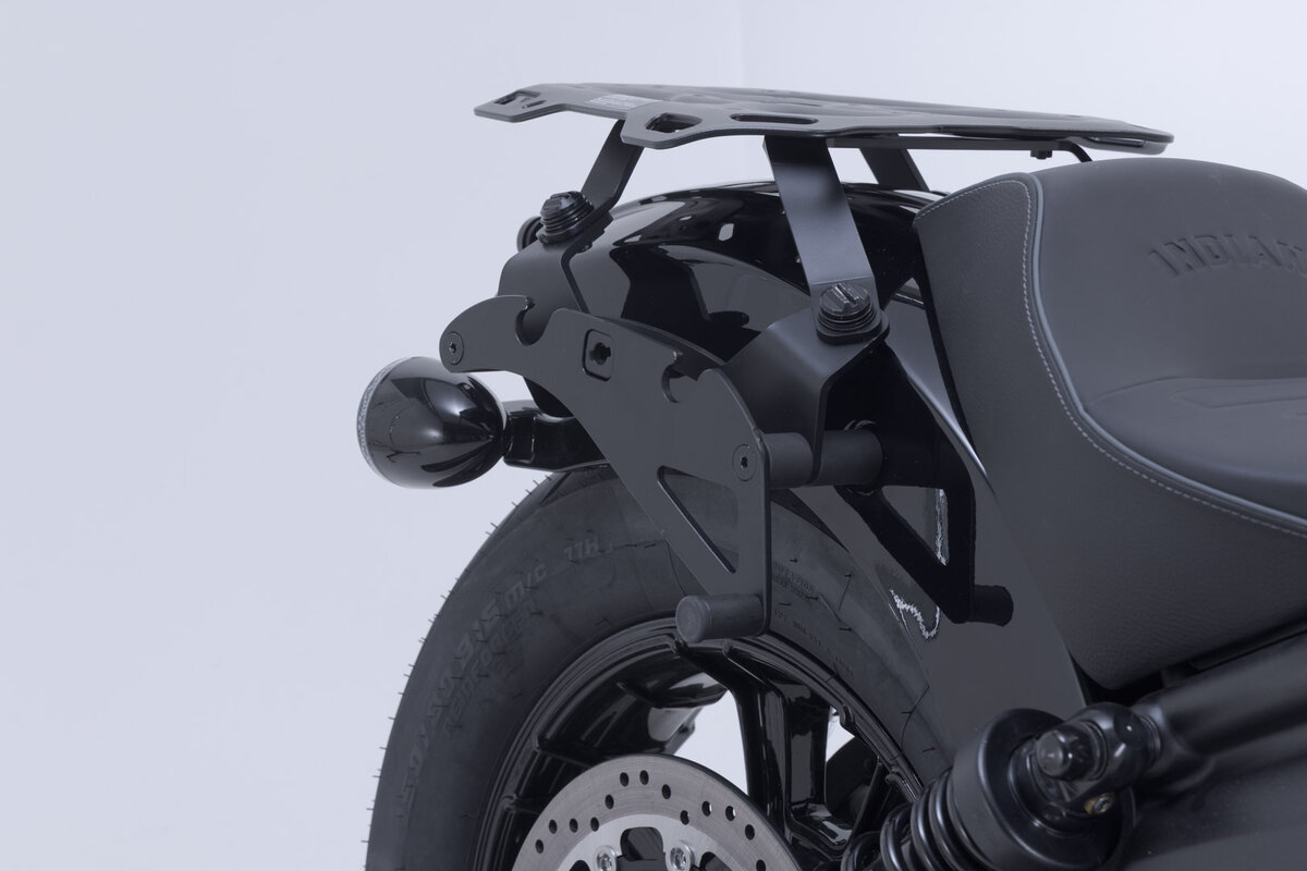 Suportul de geanta specific motocicletei poate fi montat rapid si usor pe punctele de prindere originale ale suportului aripii. Sistemul de prindere rapida permite atasarea si demontarea gentilor laterale LH Legend Gear prin cateva miscari simple ale mainii, fara a compromite siguranta fixarii.