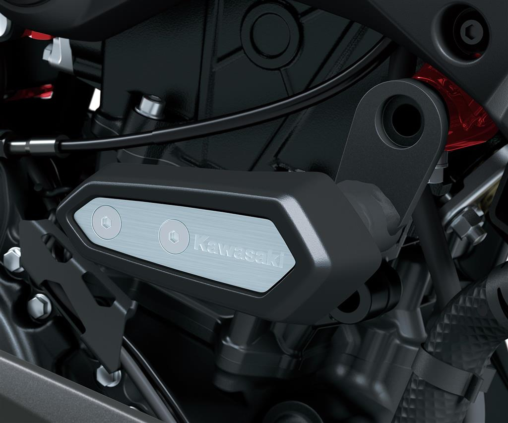 Fabricate din plastic ABS negru de înaltă densitate, cu logo-ul Kawasaki, sunt montate cu suporturi metalice proiectate de fabrică.